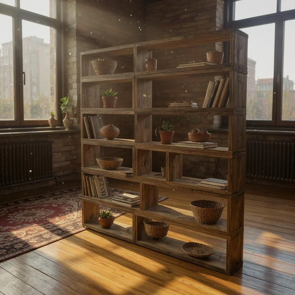 I create chunky, rustic - yet stylish - shelving units from reclaimed scaffold board timber. The piece pictured was custom fit to a bookcase, but I can also make standalone pieces.